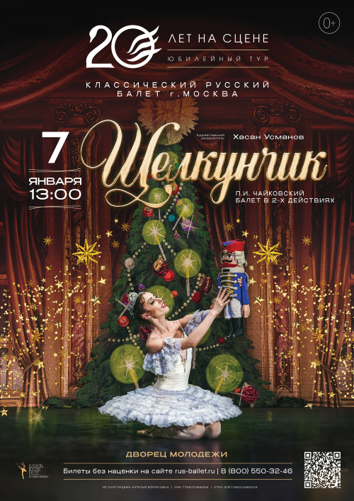 Легендарный спектакль "Щелкунчик" в версии "Классического Русского балета" - это яркий, неповторимый балет-феерия,в классической постановке, обрамленная великолепными декорациями и костюмами.