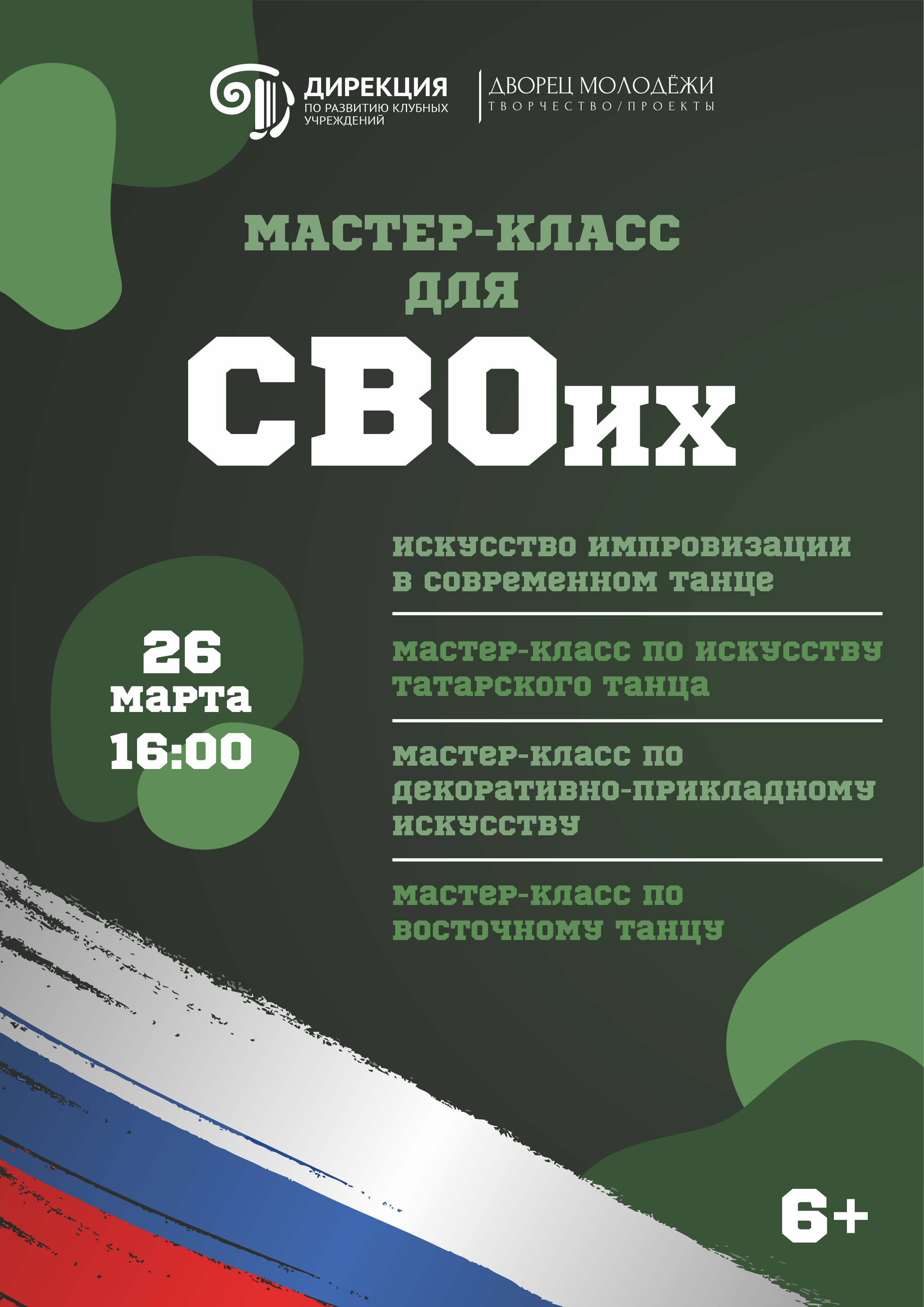 Приглашаем вас на серию мастер - классов во Дворце молодежи «Для СВОих», которые состоятся 26 марта в 16:00! Уникальная возможность погрузиться в мир искусства и творчества...